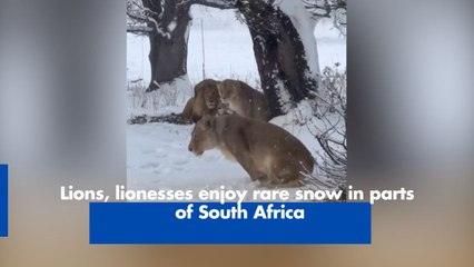 Lions, lionesses enjoy rare snow in parts of South Africa youtube